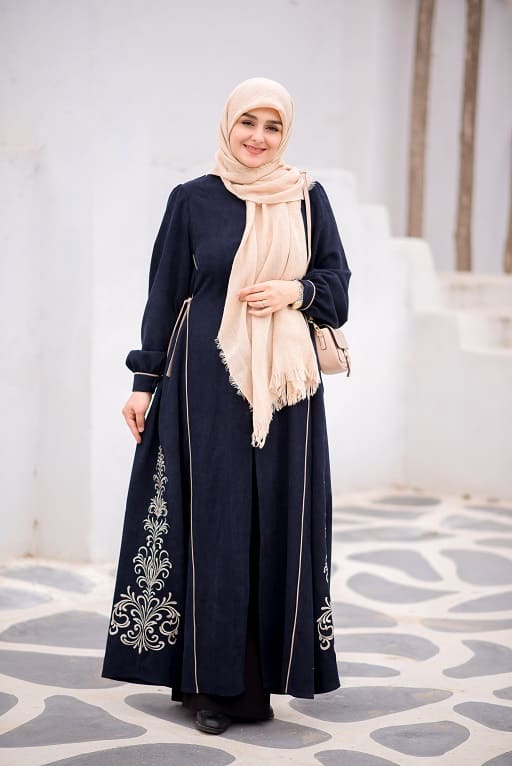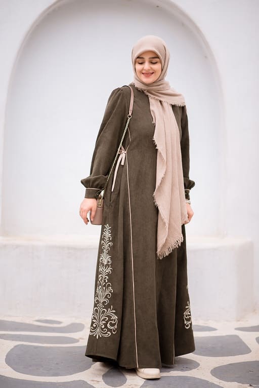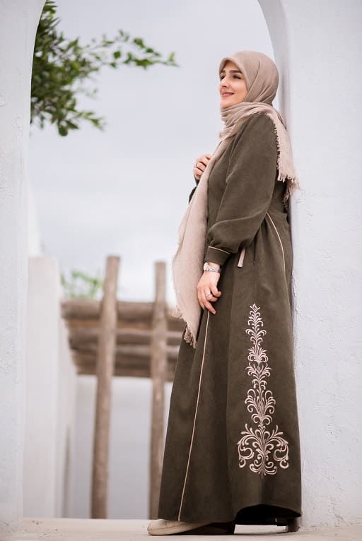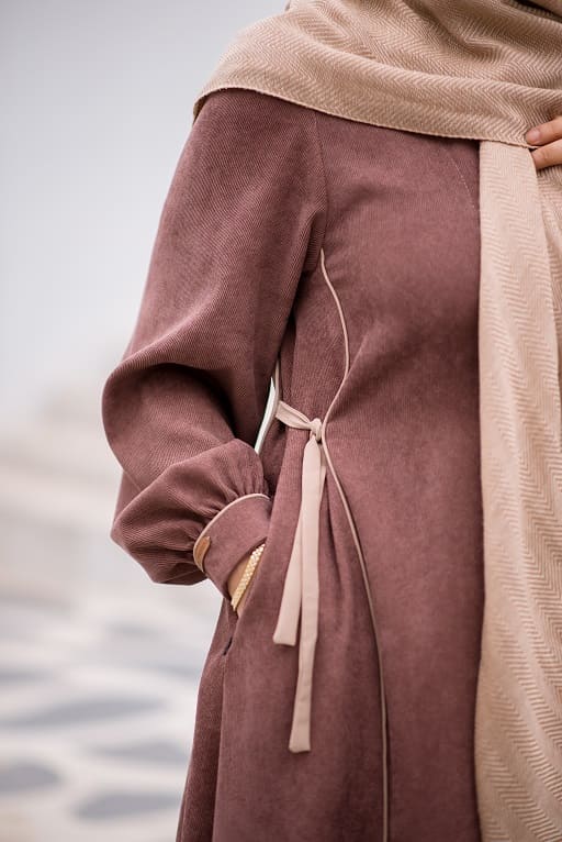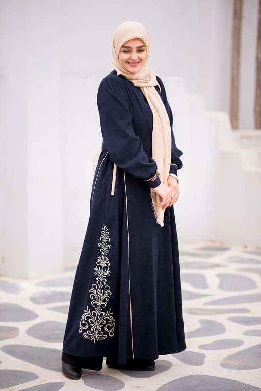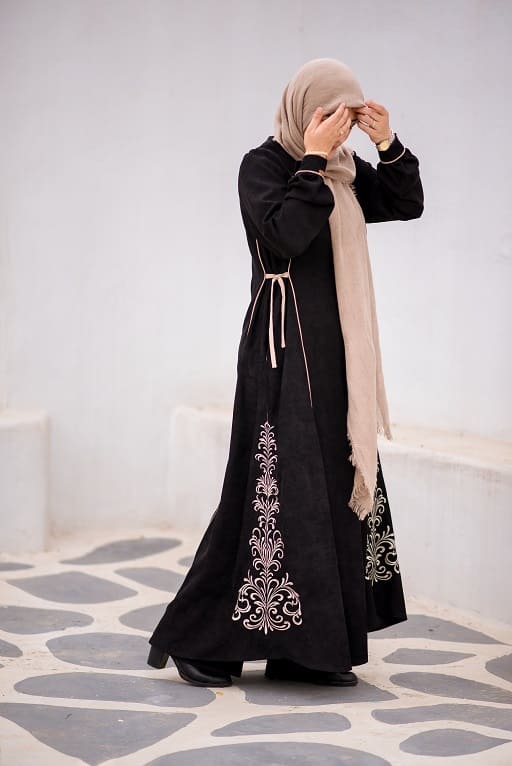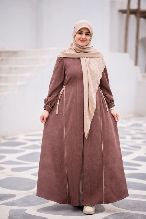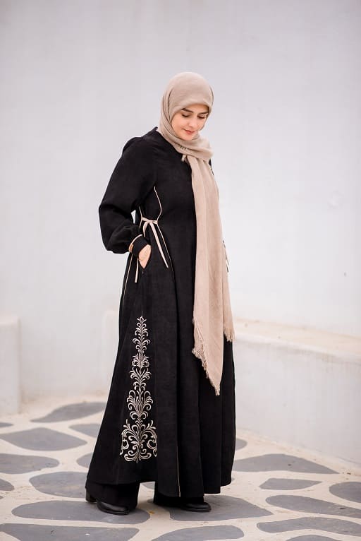این عبا جلو باز است و همچنین بند تنظیم سایز در پهلو دارد.