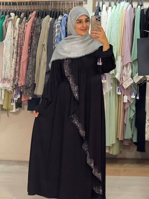 عبای زیبای سلین در دو رنگ مشکی و گلبهی طراحی شده است و جلوی عبا دولایه می باشد.