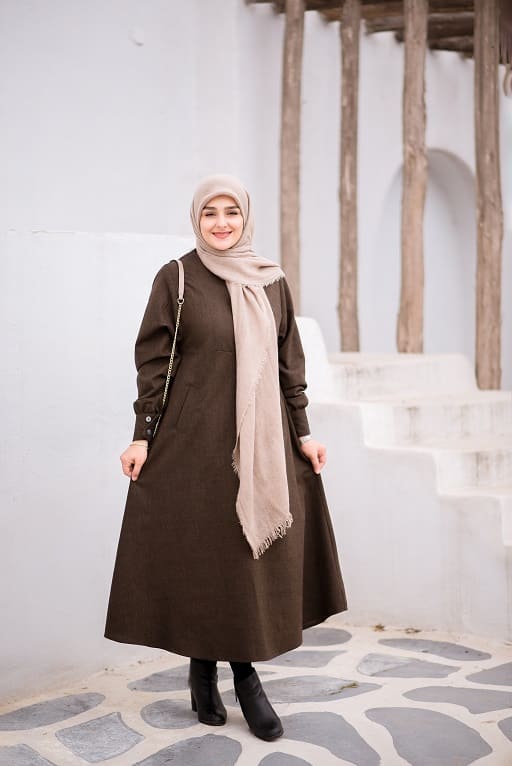 این لباس زیبا با یقه انگلیسی بلند و بصورت جلو دکمه دار و با آستین مچی طراحی شده است.